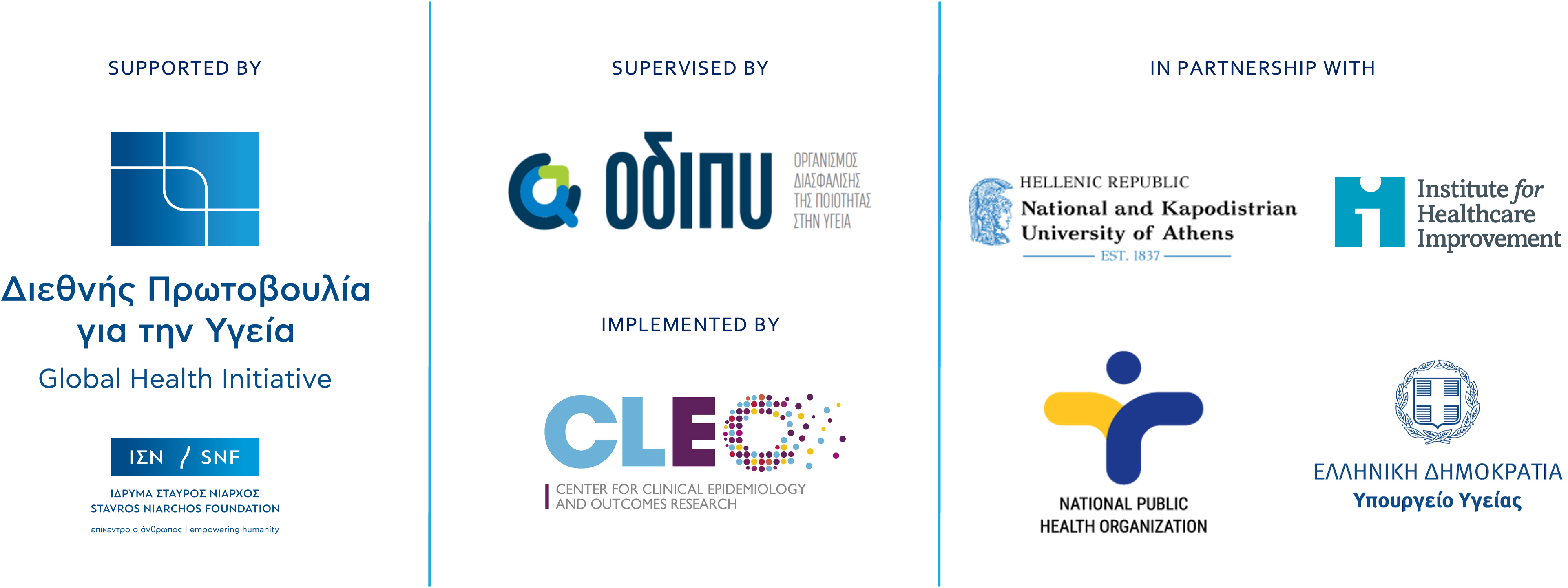 Υλοποιείται από το Κέντρο Κλινικής Επιδημιολογίας και Έκβασης Νοσημάτων – CLEO, σε συνεργασία με τον Οργανισμό Διασφάλισης της Ποιότητας στην Υγεία (Ο.ΔΙ.Π.Υ.), το Εθνικό και Καποδιστριακό Πανεπιστήμιο Αθηνών (ΕΚΠΑ), τον Εθνικό Οργανισμό Δημόσιας Υγείας (ΕΟΔΥ), το Υπουργείο Υγείας (ΥΥ) και το Ινστιτούτο Βελτίωσης της Υγείας (IHI) της Αμερικής.